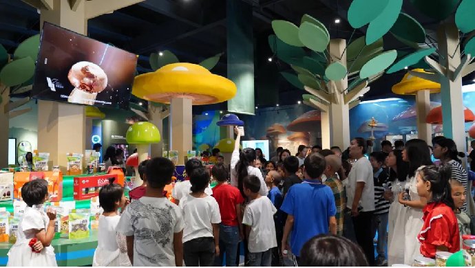 中小學(xué)生在食用菌科普館研學(xué)參觀。