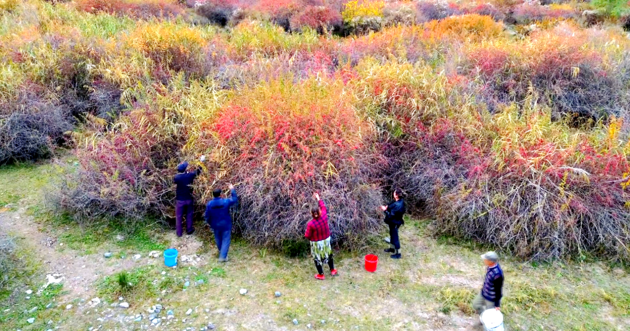 鐵熱克鎮(zhèn)鐵熱克村黨支部副書記、婦聯(lián)主席阿爾孜古麗?托合提說:“我們村野生孜熱克大概有200多畝,現在成熟了,群眾采摘,合作社回收,群眾也能掙錢增加自己的收入。”