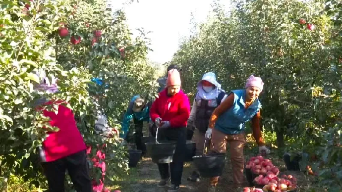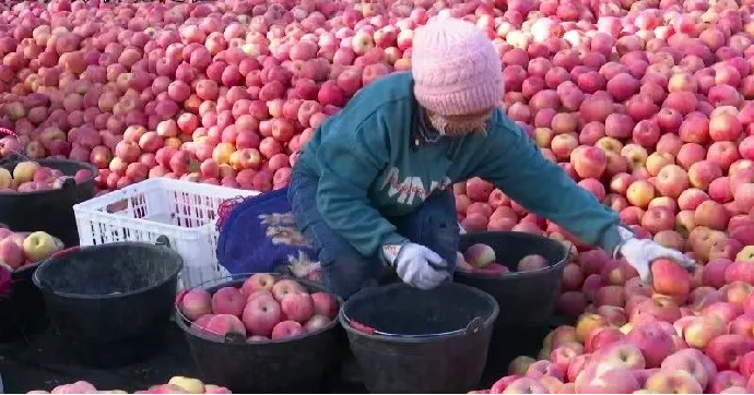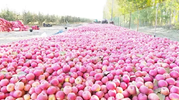 “今年我們大概種植了2800畝蘋果,1800畝已經(jīng)產(chǎn)生了經(jīng)濟效益,總產(chǎn)量預(yù)計在1500噸到2000噸左右。目前采摘的蘋果主要是‘煙富7號’,長勢好,水分充足、口感清脆。現(xiàn)在一部分蘋果輸送到下游產(chǎn)業(yè)鏈進行深加工,一部分蘋果正在入庫,我們也在積極和北疆、東北等多地客商進行洽談?!狈N植戶楊雙說道。