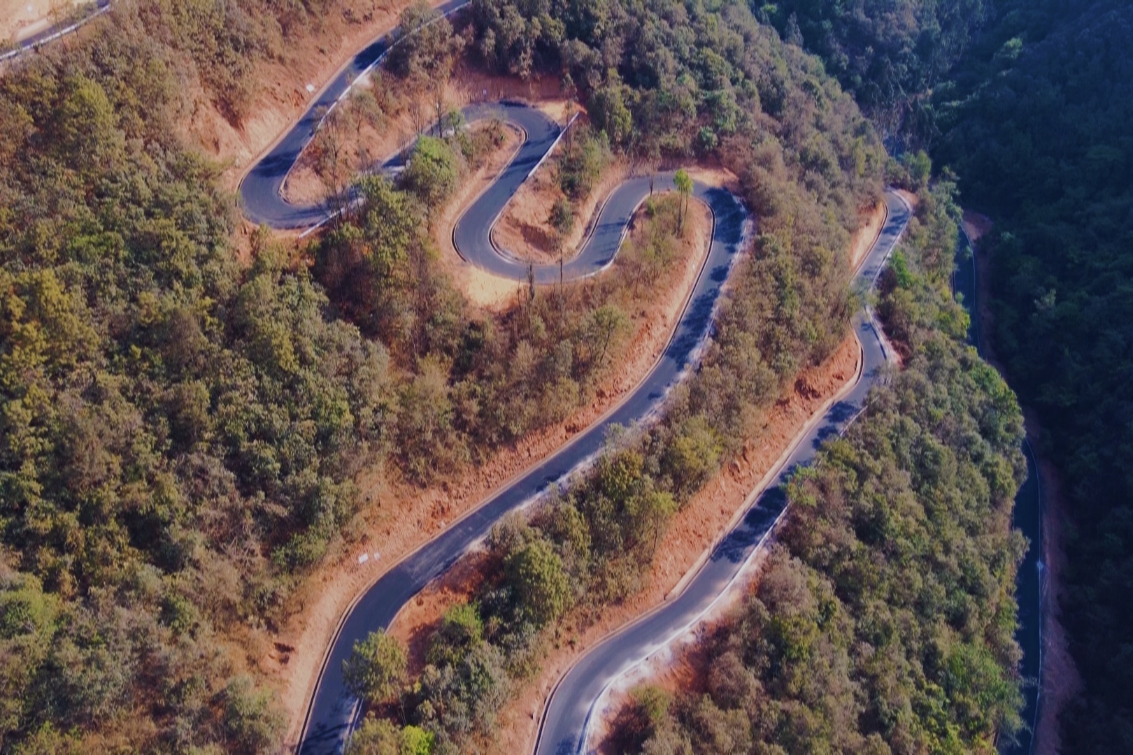 (平坦整潔的哨上路蜿蜒盤旋于群山之間。紅塔區(qū)融媒體中心供圖)