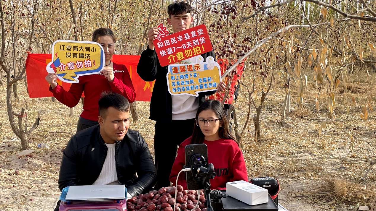 通過富有創(chuàng)意的直播方式,該團隊不僅推廣了產(chǎn)品,也提升了民豐縣的品牌形象。(圖拉罕?奧斯曼、孜拉萊?圖爾洪)