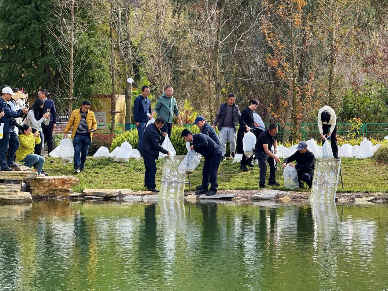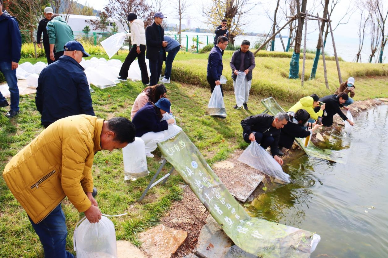 (昆明滇池度假區(qū)組織開(kāi)展滇池土著魚(yú)增殖放流活動(dòng)。滇池度假區(qū)供圖)