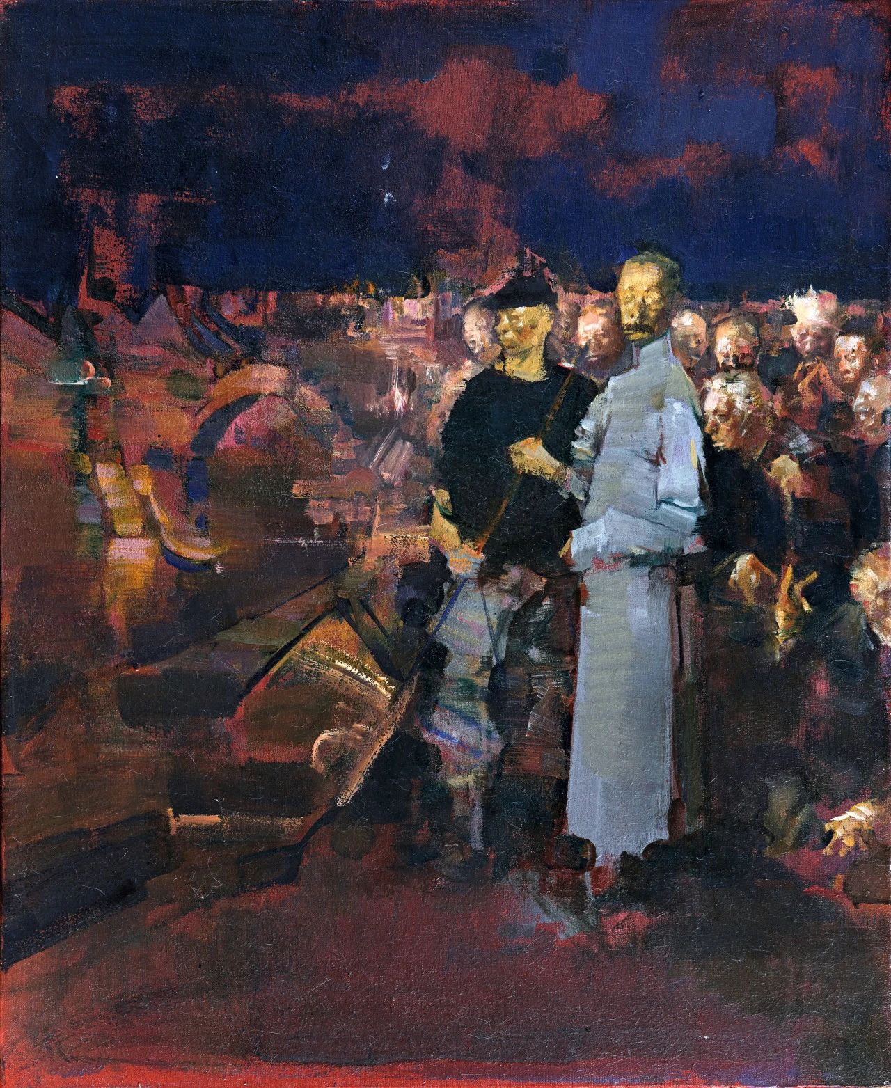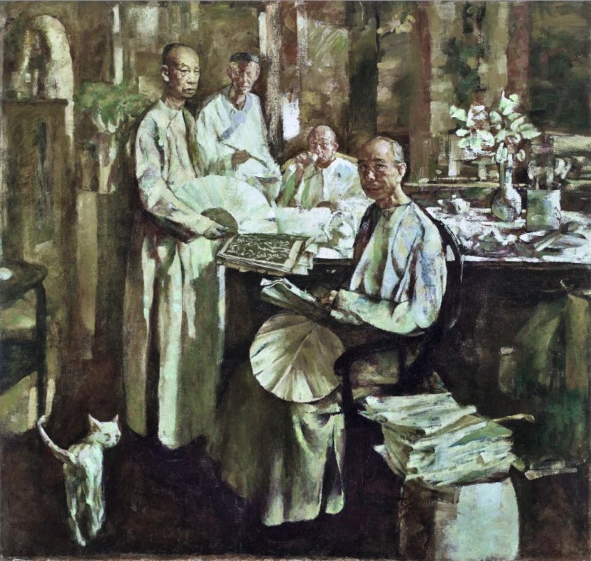 (《我輕輕的敲門——紀念海上畫家任伯年,吳昌碩、虛谷、蒲作英》 157×165cm,油畫,1984)