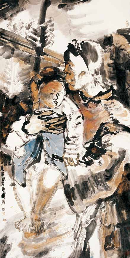 (《哀牢山系列之二》136x68cm,中國畫,2005)