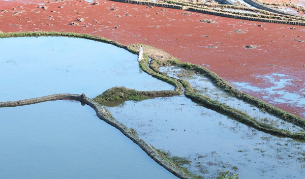 早在上世紀(jì)80年代初,就有楚雄縣鹿城鎮(zhèn)、東華鎮(zhèn)、子午鎮(zhèn)等地的村民們?cè)谘籽紫娜绽锬慷眠^坡田水體驟然泛紅的奇異景象,囿于當(dāng)時(shí)的認(rèn)知水平與技術(shù)條件,那時(shí)的他們不解其因,不過他們卻將這份不解之謎化作了茶余飯后、田間地頭的談資,流傳了下來。90年代,隨著楚雄縣成功撤縣設(shè)市,楚雄市農(nóng)業(yè)經(jīng)濟(jì)迎來了重大發(fā)展機(jī)遇。在這一背景下,楚雄當(dāng)?shù)氐挠晟t球藻野生種群逐漸進(jìn)入了科學(xué)家們的視野。通過與科研單位的緊密合作,科學(xué)家們不僅確認(rèn)了這一微藻的存在,還深入研究了其獨(dú)特的生態(tài)價(jià)值與經(jīng)濟(jì)潛力。