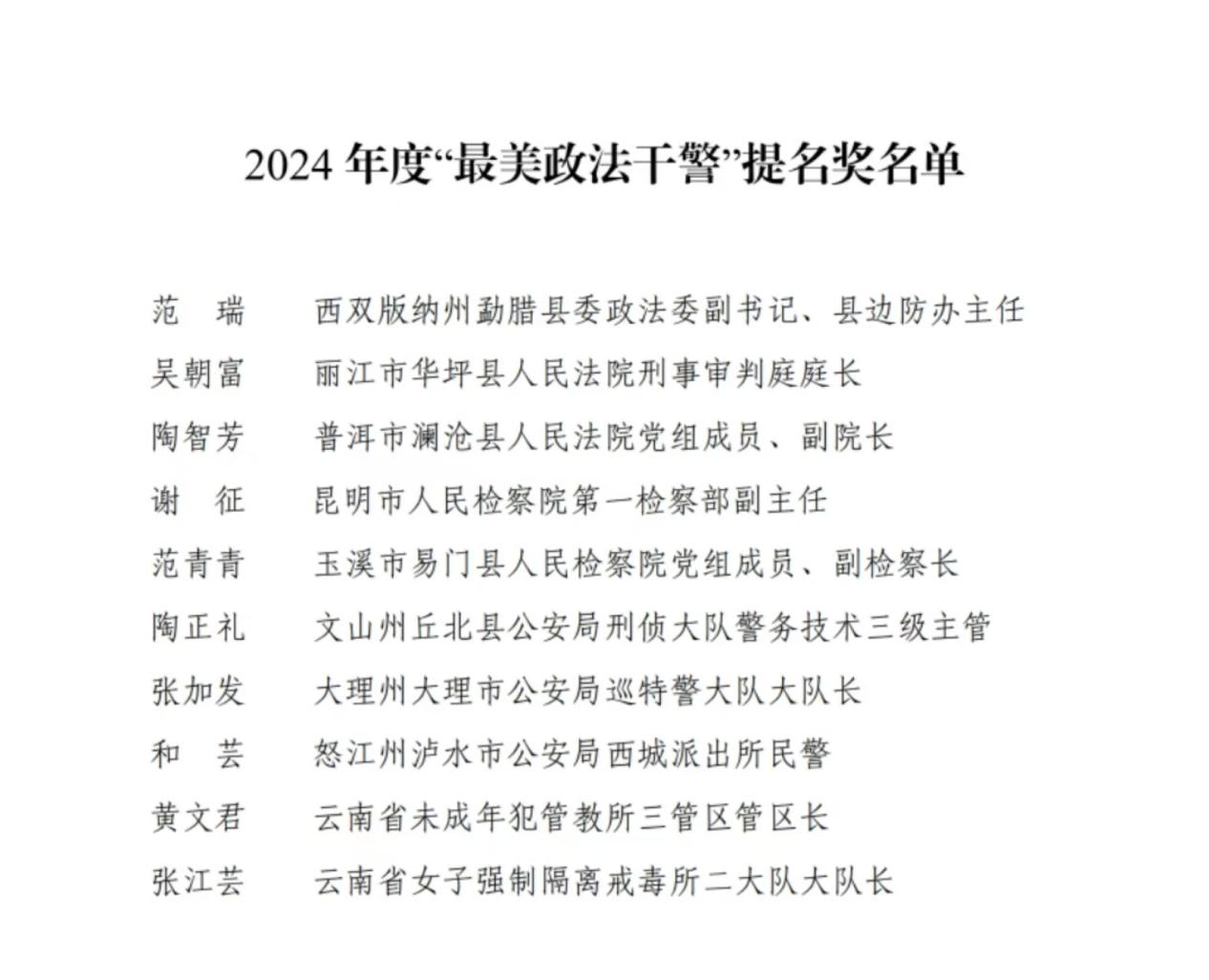 11月22日,云南省委政法委召開云南省“最美政法干警”學(xué)習(xí)宣傳活動新聞通氣會,向社會發(fā)布通報2024年度云南省“最美政法干警”人員名單和選樹情況。