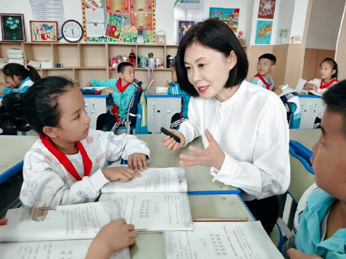 近日,在阿克蘇市天杭實驗學(xué)校三年級七班的教室里,語文老師燕子正在開展一堂生動的教學(xué),她巧妙地設(shè)計問題,引導(dǎo)學(xué)生思考、討論,并給予恰當(dāng)?shù)狞c評,課堂互動性十足,異彩紛呈?!拔液芟矚g燕老師,她上課有趣,下課也很負責(zé)。”學(xué)生張允糯說。