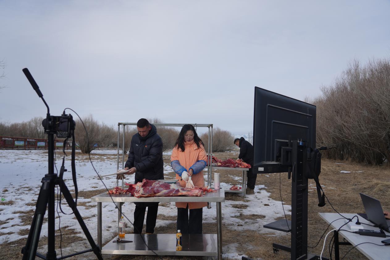 “大家好!這里是地處祖國西北邊陲的小縣城——英雄史詩“江格爾”的故鄉(xiāng)和布克賽爾蒙古自治縣。鏡頭里的是剛從屠宰場(chǎng)拉回來的新鮮牛肉,這是不帶骨的前腿肉……”在銀裝素裹的賽爾山腳下,一場(chǎng)線上銷售牛肉的活動(dòng)正在熱播中。