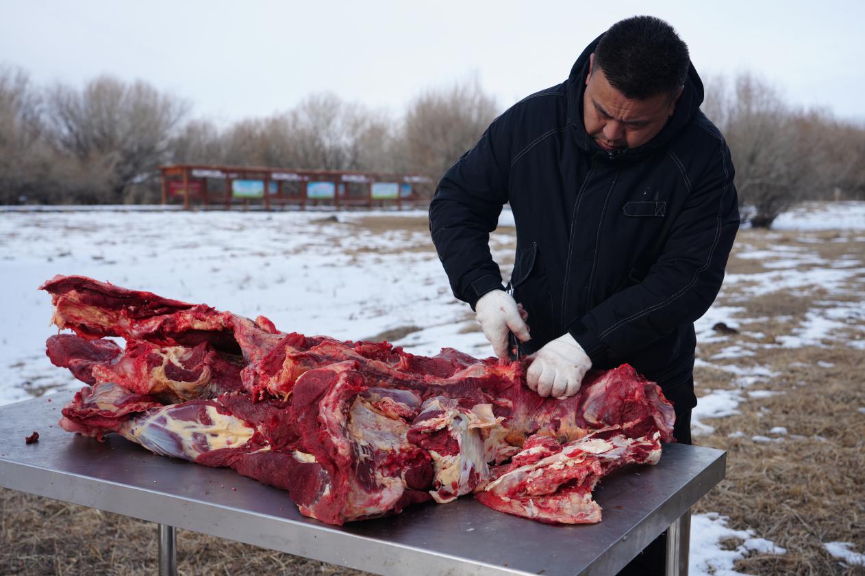 和布克賽爾縣農(nóng)業(yè)農(nóng)村局副局長(zhǎng)郭建德介紹,目前,全縣有機(jī)認(rèn)證的草場(chǎng)有1200萬畝,其中巴音傲瓦鄉(xiāng)喬魯呼都格村占19萬畝。去年,全村牛存欄近5000頭,都在有機(jī)牧場(chǎng)放養(yǎng)。今年,該村計(jì)劃屠宰牛500頭以上,村民冬宰了200多頭,近100頭滯銷。