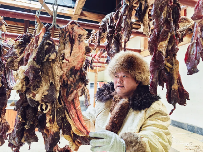 風(fēng)干肉制作展示,草原六畜興旺展示等環(huán)節(jié),讓極寒里的冰情雪韻幻化出一派熱氣騰騰的冬季冰雪風(fēng)光。