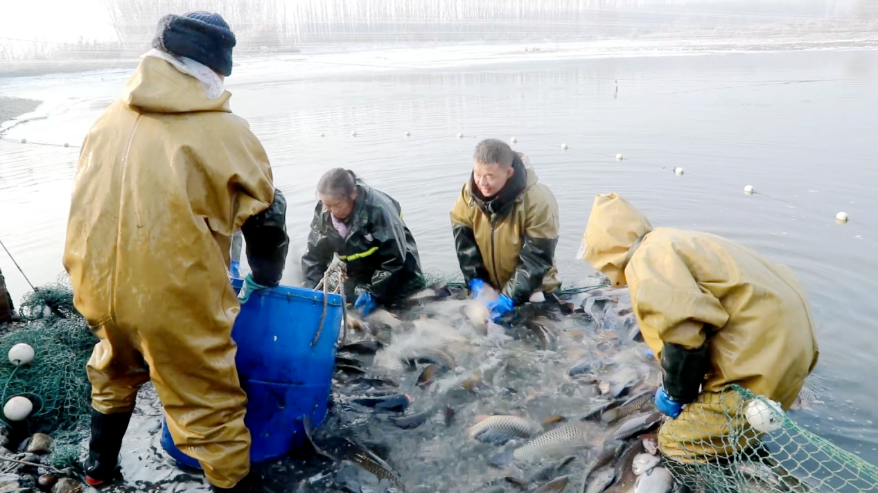 眼下正是漁民豐收的季節(jié),在拜城縣米吉克鄉(xiāng)亞闊坦村,養(yǎng)殖戶們正忙著捕魚,拉網(wǎng)、起網(wǎng)、挑魚、稱重、裝車、一氣呵成,呈現(xiàn)出一派“魚躍人歡”的豐收節(jié)景象。