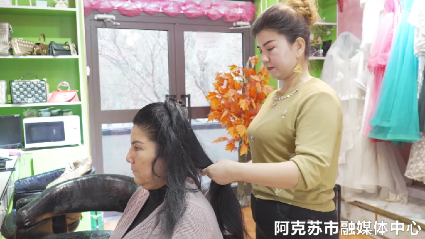 在阿克蘇市庫(kù)木巴什鄉(xiāng)的一家美容美發(fā)店,各類(lèi)美容產(chǎn)品、設(shè)備工具一應(yīng)俱全,36歲的布薩然木?馬木提在杭州市援疆指揮部和阿克蘇市婦聯(lián)的扶持下,不僅開(kāi)創(chuàng)了屬于自己的“美麗”事業(yè),還帶著身邊姐妹們一起靠技能改變命運(yùn),成就了靚麗人生。婦女創(chuàng)業(yè)代表布薩然木?馬木提說(shuō):“4月份我參加‘最美’家庭走親交流活動(dòng)去到杭州,感覺(jué)風(fēng)景很好,人也很熱情,他們到阿克蘇來(lái)的時(shí)候,我們一起吃飯,一起跳舞,一起旅游,成了很要好的親人。在我創(chuàng)業(yè)的時(shí)候,援疆指揮部給我提供了很大的幫助,贈(zèng)送了按摩床、消毒柜還有技術(shù)支持等,我特別感謝?!?/p>