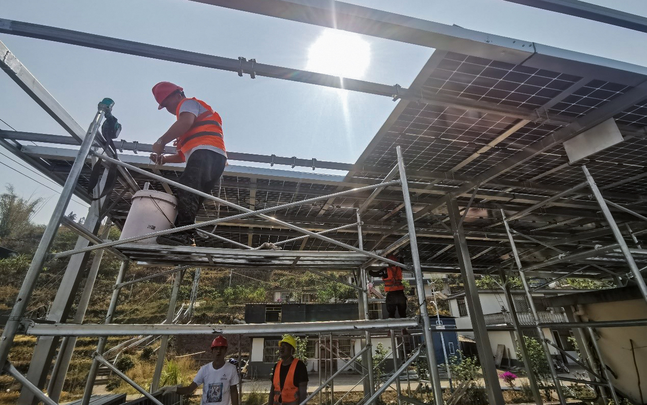 (工人正在安裝光伏組件。譚福柔/攝)