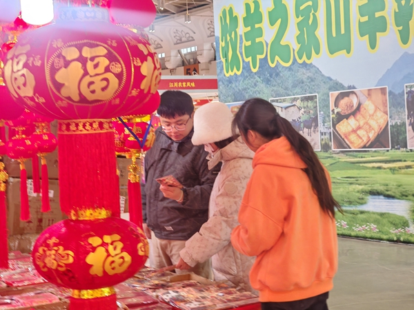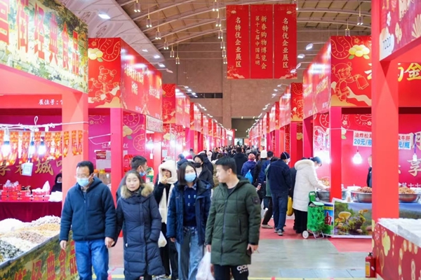 在春博會現(xiàn)場,攤位裝飾喜慶,各色年貨鋪滿貨架,種類豐富,價格實惠,前來采購年貨的市民絡(luò)繹不絕,處處洋溢著濃濃的年味和“煙火氣”。