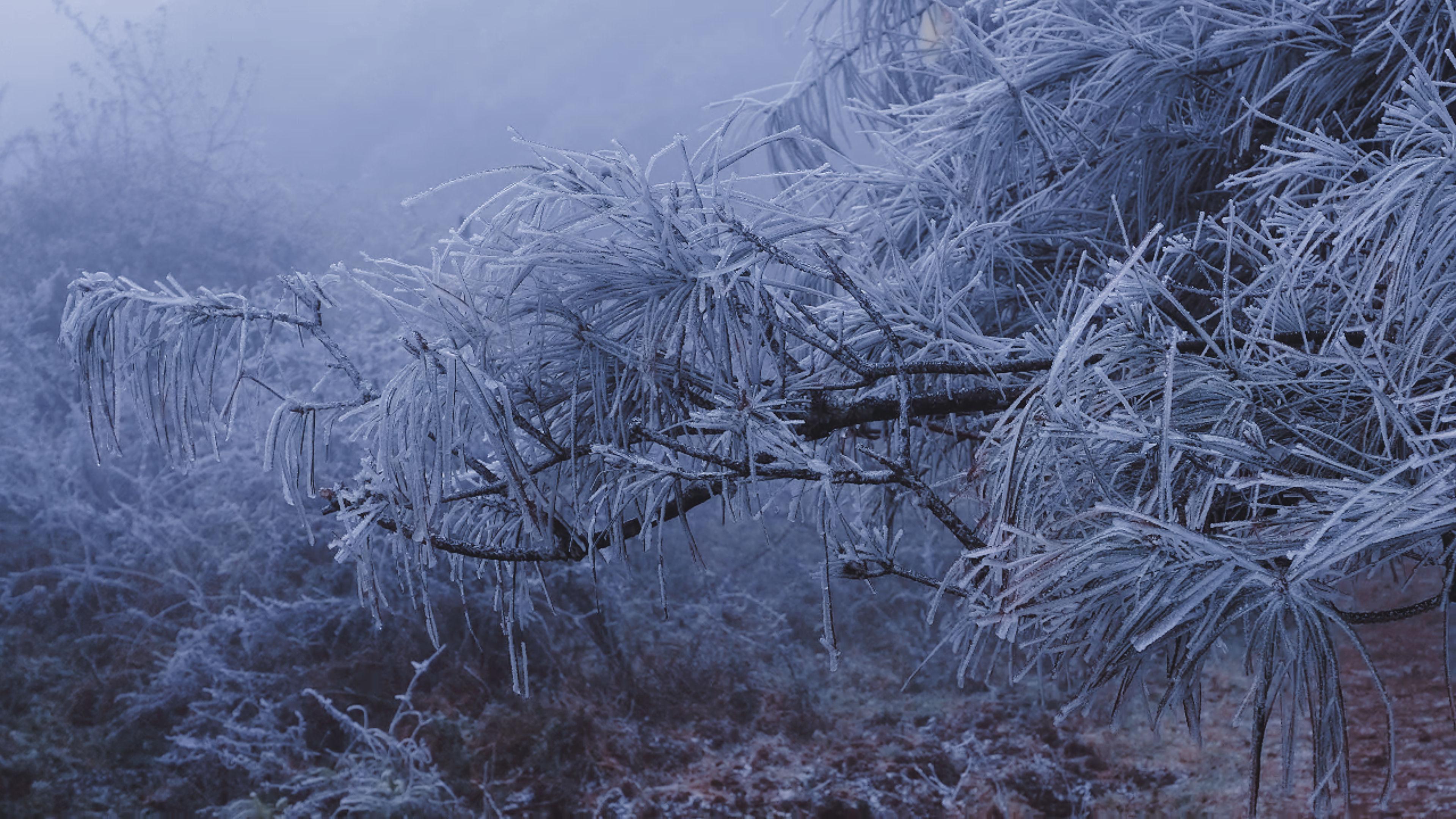 美如仙境,江川梁王山現(xiàn)霧凇景觀