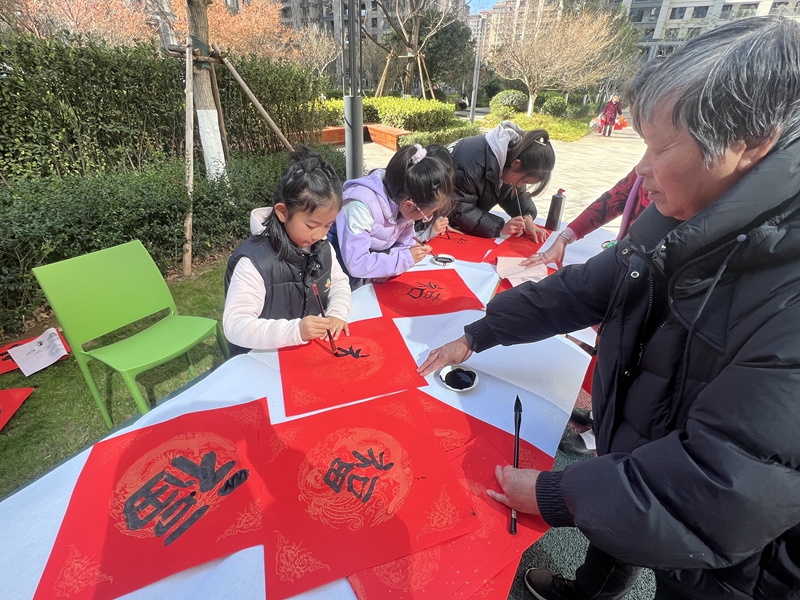孩子們、熱愛書法的居民們也在現(xiàn)場氛圍的帶動下,躍躍欲試,提筆寫下了自己獨一無二的“?!弊郑瑢懴聦π乱荒甑拿篮米T概c期盼。喜慶的紅紙、吉祥的春聯(lián)、不絕于耳的歡聲笑語,墨香與歡樂交織在一起,瞬間將年味兒烘托得愈發(fā)濃厚!