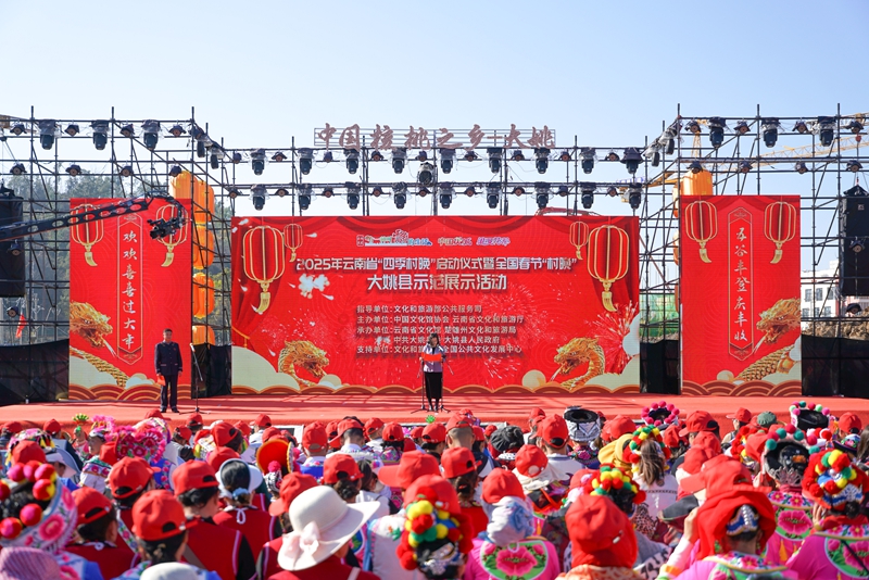 1月23日,隨著春節(jié)腳步的臨近,2025年云南省“四季村晚”啟動儀式暨全國春節(jié)“村晚”大姚縣示范展示活動在云南省楚雄彝族自治州大姚縣金碧鎮(zhèn)李灣社區(qū)東塔湖濕地公園舉行。