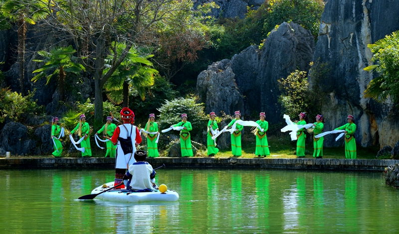 石林湖的槳板活動為游客提供了充滿活力的新春體驗。在波光粼粼的湖面上,游客們踏上槳板,在輕柔的波浪中緩緩漂蕩,既享受了運動的樂趣,又與新春的歡樂氛圍融合。而在石林勝景、且住為佳、劍峰池等區(qū)域,游客們領(lǐng)略到了原生態(tài)文化的魅力,古老的技藝和民俗在此生動呈現(xiàn),讓大家觸摸到了石林阿詩瑪文化的歷史脈絡(luò)。