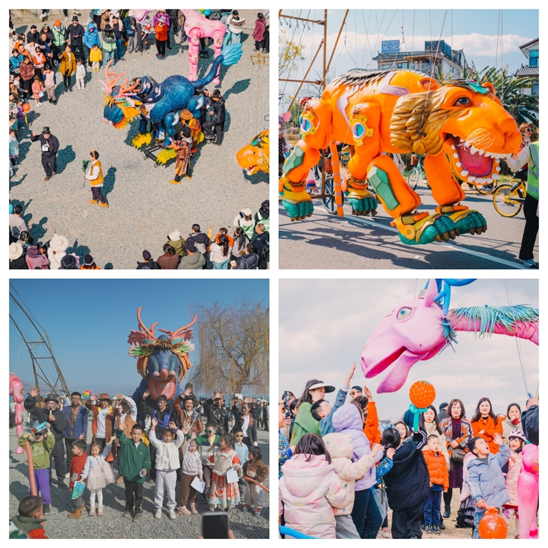 活動期間奇幻山海經(jīng)巨型提線木偶戲,在洱海廊道定點巡游互動,象征祥瑞的麒麟、兇猛威武的玄虎、代表長壽與吉祥的鹿蜀等奇獸從遠(yuǎn)古神話中走出,與游客親密接觸,讓人置身于奇幻世界中。