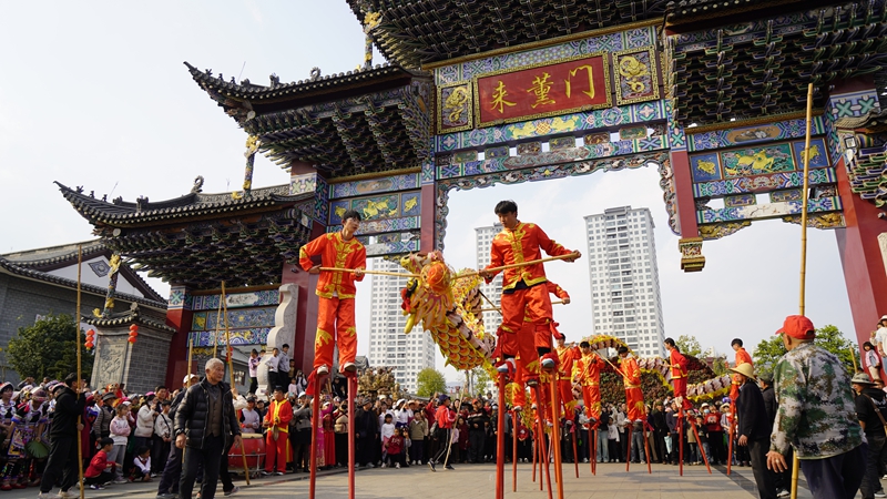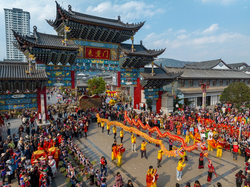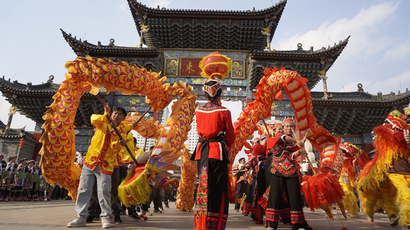 2月15日,“行走嶍峨?多彩非遺”2025年峨山開(kāi)新街非遺(民俗)展演在云南省玉溪市峨山縣嶍峨古鎮(zhèn)開(kāi)展,吸引了眾多市民和游客前來(lái)觀賞。