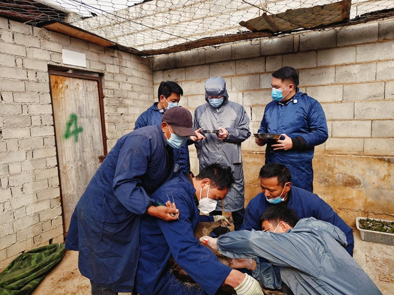 2月11日,在彤麟農(nóng)業(yè)林麝養(yǎng)殖洛吉基地里,洛吉鄉(xiāng)黨委書記魯茸達瓦正與洛吉村拉巴組創(chuàng)業(yè)青年、香格里拉彤麟農(nóng)業(yè)科技有限公司負責人李東成參觀林麝圈舍、觀摩林麝采香?!拔覀冇胁上慵夹g(shù)專利,且有專業(yè)人員負責,不會傷害到林麝。養(yǎng)殖一對林麝,一只公麝一年產(chǎn)麝香約20克,價值約2.4萬,一只母麝每年約產(chǎn)一對(母麝、公麝)幼崽,價值約7萬,一年就能帶來9萬元左右的收益?!崩顤|成介紹。