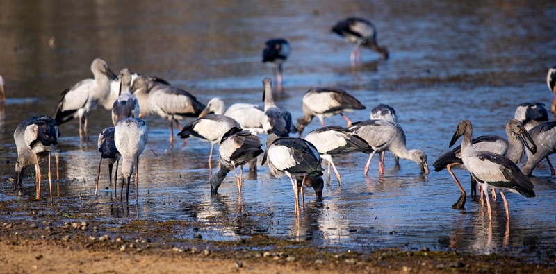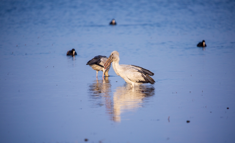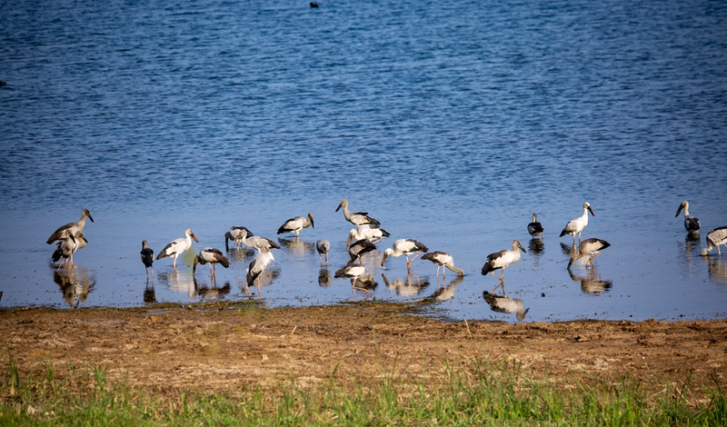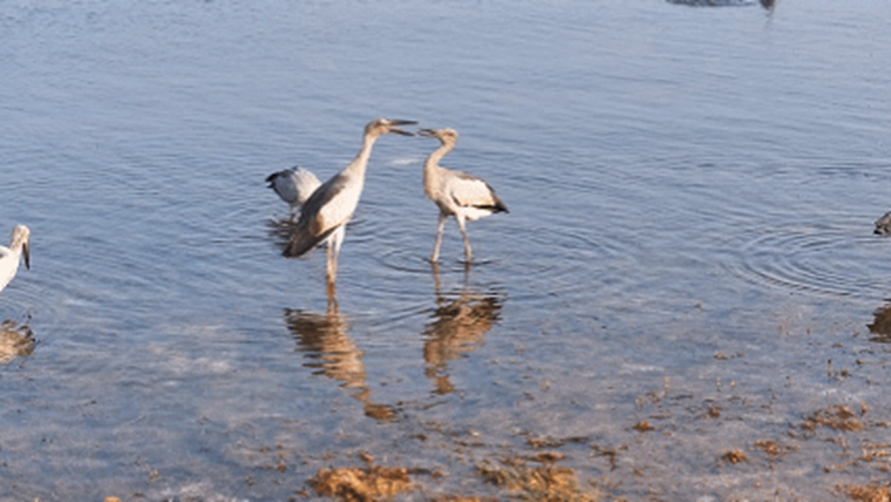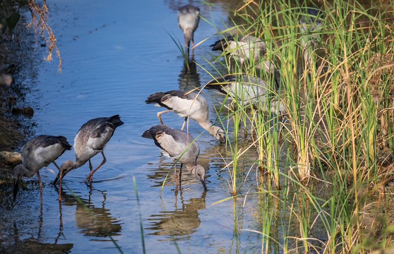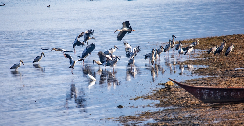 鉗嘴鸛屬國家二級重點保護動物,喜歡棲息于沼澤、淺灘、水田等相對潮濕、生態(tài)環(huán)境好的區(qū)域。在撫仙湖畔,它們時而在高空滑翔,時而在撫仙湖聚集覓食,構成了一幅鳥與自然和諧共生的美麗畫卷。它們或棲或戲、或起或落,熱鬧的場景向路人透露著春的氣息,成為一道亮麗的風景線。
