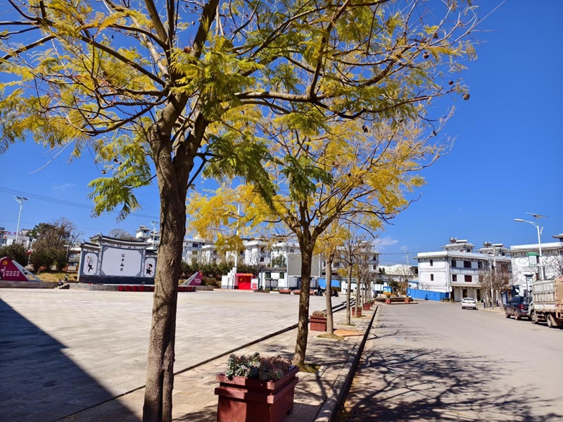 近日,走進云南省楚雄州南華縣雨露鄉(xiāng)楊方村,整潔寧靜的鄉(xiāng)村廣場映入眼簾,一排蒼勁有力的行道樹在藍天下筆直生長,廣場邊的花箱里,胖嘟嘟的多肉在陽光里晶瑩剔透。此番變化,讓周邊居民連連稱贊。