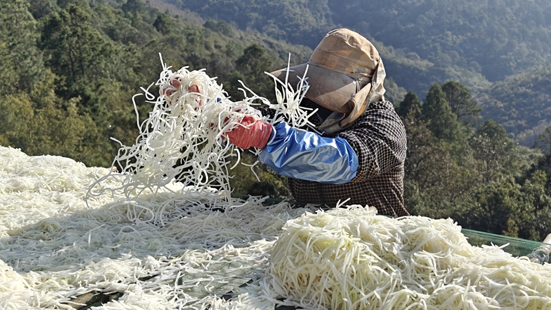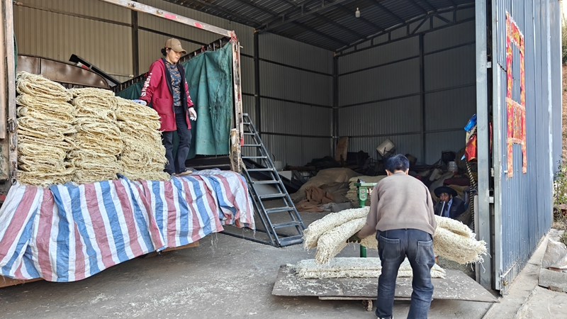 收購商施興華說:“我每年都會來這里收蘿卜絲,放馬溝蘿卜絲品質(zhì)都比較好,味道香甜,市場需求和口碑都不錯。我們每天大概收5到6噸蘿卜絲,多的時(shí)候能收到12到13噸,發(fā)往通海做成產(chǎn)品,出口到韓國和日本這些國家?!?/p>