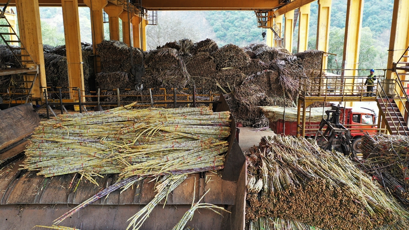 走進(jìn)新平恒誠(chéng)糖業(yè)有限公司,可以看到前來(lái)交售甘蔗的運(yùn)輸車輛絡(luò)繹不絕,從生產(chǎn)車間一直排到廠區(qū)門口等待過(guò)磅入廠。在公司生產(chǎn)車間,映入眼簾的是堆積成山的糖料,一車車糖料被吊裝、輸送至壓榨機(jī),經(jīng)過(guò)榨汁、澄清、蒸發(fā)、分蜜、干燥等工序,生產(chǎn)出細(xì)膩純凈還帶余溫的白糖。