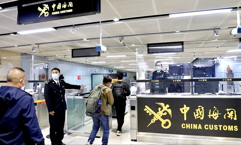 (海關(guān)關(guān)員在昆明機場口岸引導(dǎo)入境旅客有序通關(guān)。馬舒嫻/攝)