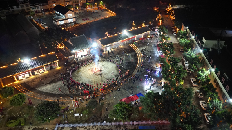 夜幕降臨,由洛河村、跨喜村、把者岱村、法沖村、雙龍村5個(gè)村委會(huì)代表共同點(diǎn)燃了火把,各村舞蹈代表帶領(lǐng)現(xiàn)場(chǎng)的游客們快樂打跳,將現(xiàn)場(chǎng)氣氛推向高潮。