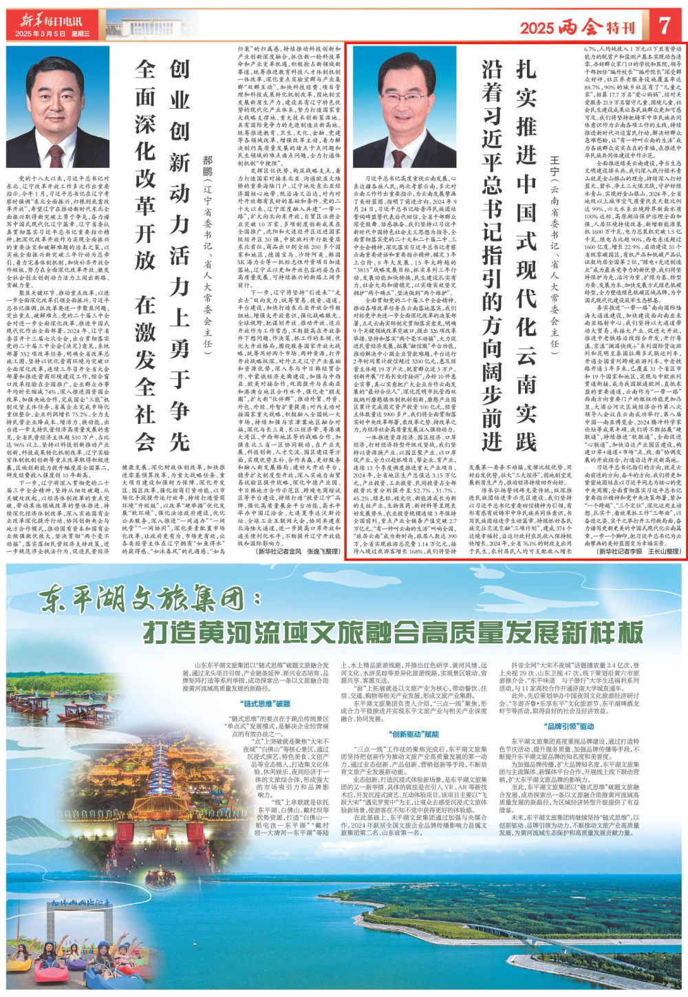 傳承弘揚(yáng)誓詞碑光榮傳統(tǒng),縱深推進(jìn)民族團(tuán)結(jié)進(jìn)步示范區(qū)建設(shè)。我們堅(jiān)持以習(xí)近平總書記重要回信精神為引領(lǐng),有形有感有效鑄牢中華民族共同體意識(shí),書寫民族團(tuán)結(jié)進(jìn)步生動(dòng)篇章。持續(xù)抓好各民族交往交流交融“三項(xiàng)計(jì)劃”,建成374個(gè)邊境幸福村,沿邊行政村農(nóng)民收入保持較快增長(zhǎng)。2024年,全省76.1%的財(cái)政支出用于民生,農(nóng)村居民人均可支配收入增長(zhǎng)6.7%,人均純收入1萬元以下且有勞動(dòng)能力的脫貧戶和監(jiān)測(cè)戶基本實(shí)現(xiàn)動(dòng)態(tài)清零。辦好群眾家門口的學(xué)校和醫(yī)院,領(lǐng)導(dǎo)干部擔(dān)任“編外校長(zhǎng)”“編外院長(zhǎng)”深受群眾好評(píng),社區(qū)養(yǎng)老服務(wù)設(shè)施覆蓋率達(dá)88.7%,90%的城鄉(xiāng)社區(qū)有了“兒童之家”,招募17.7萬名“愛心媽媽”,結(jié)對(duì)關(guān)愛服務(wù)21.9萬名留守兒童、困境兒童,社會(huì)民生建設(shè)成果讓各民族群眾更加可感可及。我們將堅(jiān)持把鑄牢中華民族共同體意識(shí)作為云南各項(xiàng)工作的主線,持續(xù)推進(jìn)新時(shí)代興邊富民行動(dòng),解決好群眾急難愁盼,讓“有一種叫云南的生活”成為各族群眾實(shí)實(shí)在在的幸福,在推進(jìn)中華民族共同體建設(shè)中作示范。