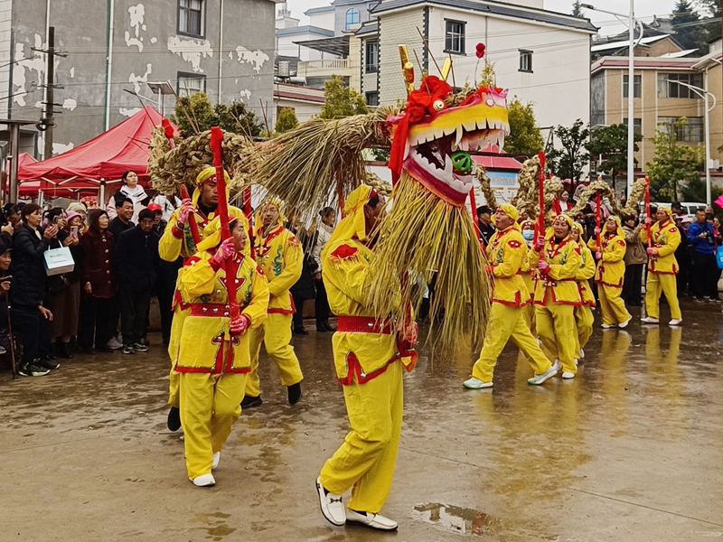 當(dāng)天10時(shí),湯池街道黨工委書記彭英杰簡短講話后,昆明陽宗海七甸園區(qū)黨工委副書記、陽宗海區(qū)總工會主席徐敏宣布土官社區(qū)“二月八”民俗文化活動正式啟幕!龍鳳獅虎旗在前面引道,龍燈、麒麟燈、獅子燈齊齊上陣,10支巡演隊(duì)伍從土官村口出發(fā),沿土主廟至文化廣場巡游。舞龍者身著傳統(tǒng)服飾翻騰起舞,彩獅與觀眾互動逗趣,沿途鑼鼓聲與歡呼聲交織,再現(xiàn)明代碑文中“士女如云,熙熙攘攘”的盛況。