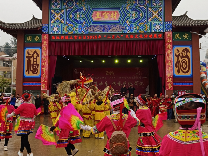 3月7日(農(nóng)歷二月初八),昆明陽宗海風(fēng)景名勝區(qū)湯池街道土官社區(qū)延續(xù)百年傳統(tǒng),舉行“二月八”民俗文化活動。作為草甸地區(qū)最具代表性的傳統(tǒng)民俗活動,“二月八”承載著百年來人們的精神信仰。