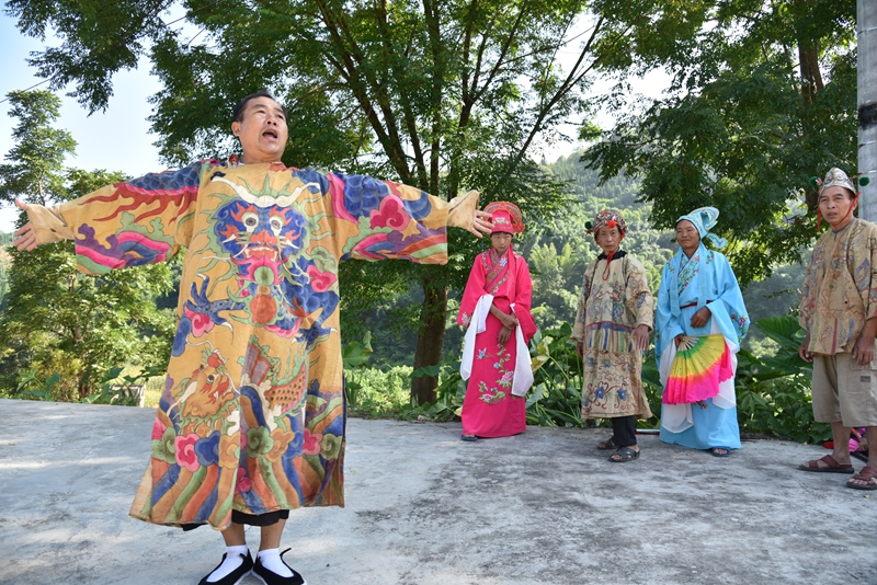 (2022年7月16日蝦其仙在西一鎮(zhèn)養(yǎng)樹(shù)村演唱阿細(xì)先基。陳保舜攝)