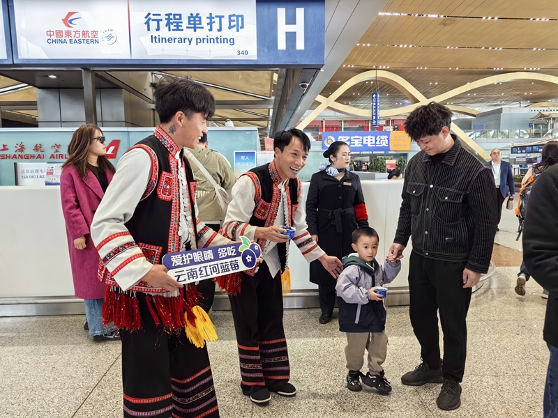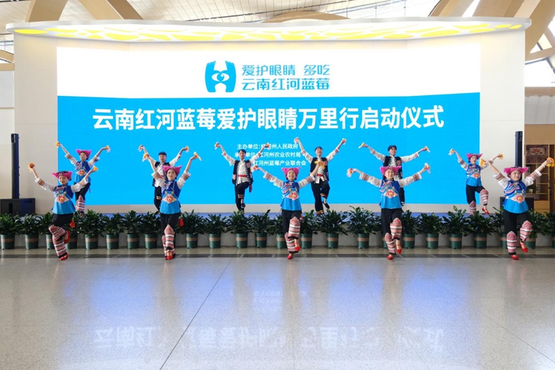3月23日,在昆明長水國際機場內,伴隨著節(jié)奏細致多變、旋律悠揚的云南彝族海菜腔,“2025云南紅河藍莓愛護眼睛萬里行”活動拉開帷幕。