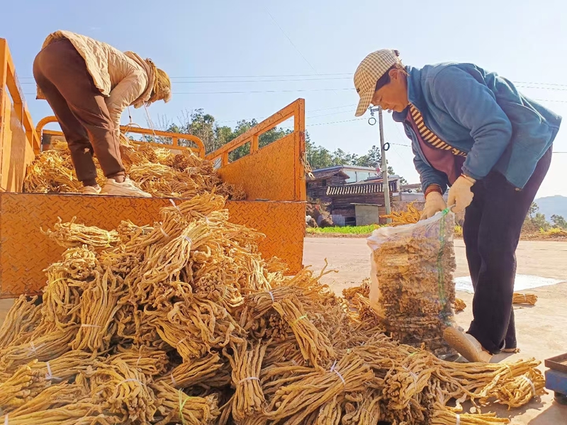 “我們這里地處邊遠(yuǎn)山區(qū)、高海拔,較適宜蘿卜生長(zhǎng),2005年在三街鎮(zhèn)黨委政府的支持下,我們經(jīng)過(guò)前期充分調(diào)研,把合作社建在三街鎮(zhèn)螞蝗箐村委會(huì),經(jīng)過(guò)這二十年的發(fā)展,已形成比較穩(wěn)定的農(nóng)業(yè)產(chǎn)業(yè),同時(shí)也輻射周邊2個(gè)鄉(xiāng)鎮(zhèn)蘿卜產(chǎn)業(yè)的發(fā)展,帶動(dòng)種植面積突破9000余畝,今年來(lái)我們共收購(gòu)蘿卜條3600余噸,產(chǎn)值達(dá)1800余萬(wàn)元?!焙献魃缲?fù)責(zé)人說(shuō)。