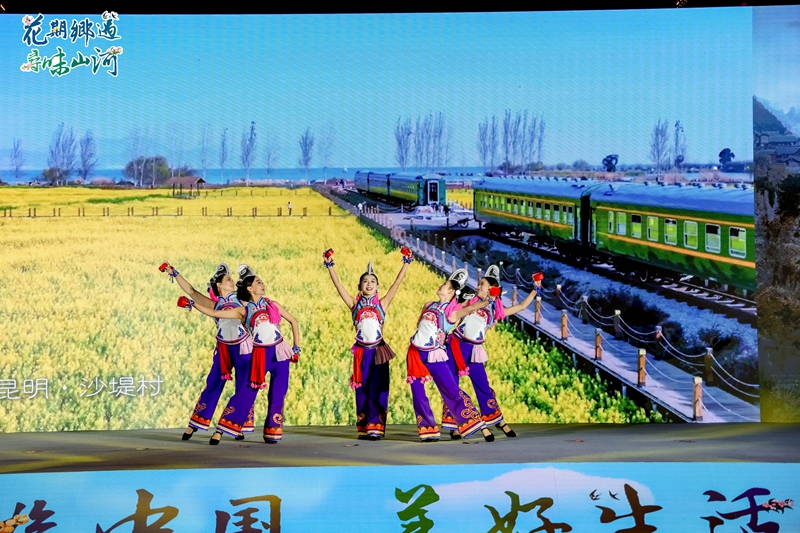 活動(dòng)現(xiàn)場(chǎng),云南省文化和旅游廳以“咖語(yǔ)茶香?煙火鄉(xiāng)村”為主題,通過(guò)《春潤(rùn)云南?詩(shī)意棲居》《霞客歸來(lái)?話說(shuō)滇游》《春語(yǔ)茶香?煙火鄉(xiāng)村》《歌舞為媒?點(diǎn)贊云南》四個(gè)情景內(nèi)容展示,為參與活動(dòng)的嘉賓們及當(dāng)?shù)厥忻瘛⒂慰蜕鷦?dòng)展現(xiàn)了“旅居云南”“始于山水 歸于煙火”的美麗畫(huà)卷。