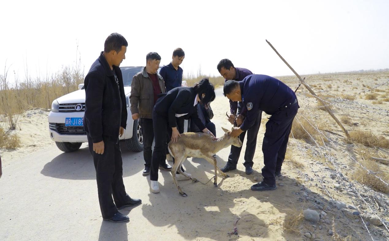 近日,于田縣林業(yè)和草原局在阿日希鄉(xiāng)野生動物保護(hù)區(qū)將國家二級重點保護(hù)野生動物鵝喉羚經(jīng)救護(hù)康復(fù)后放歸自然。