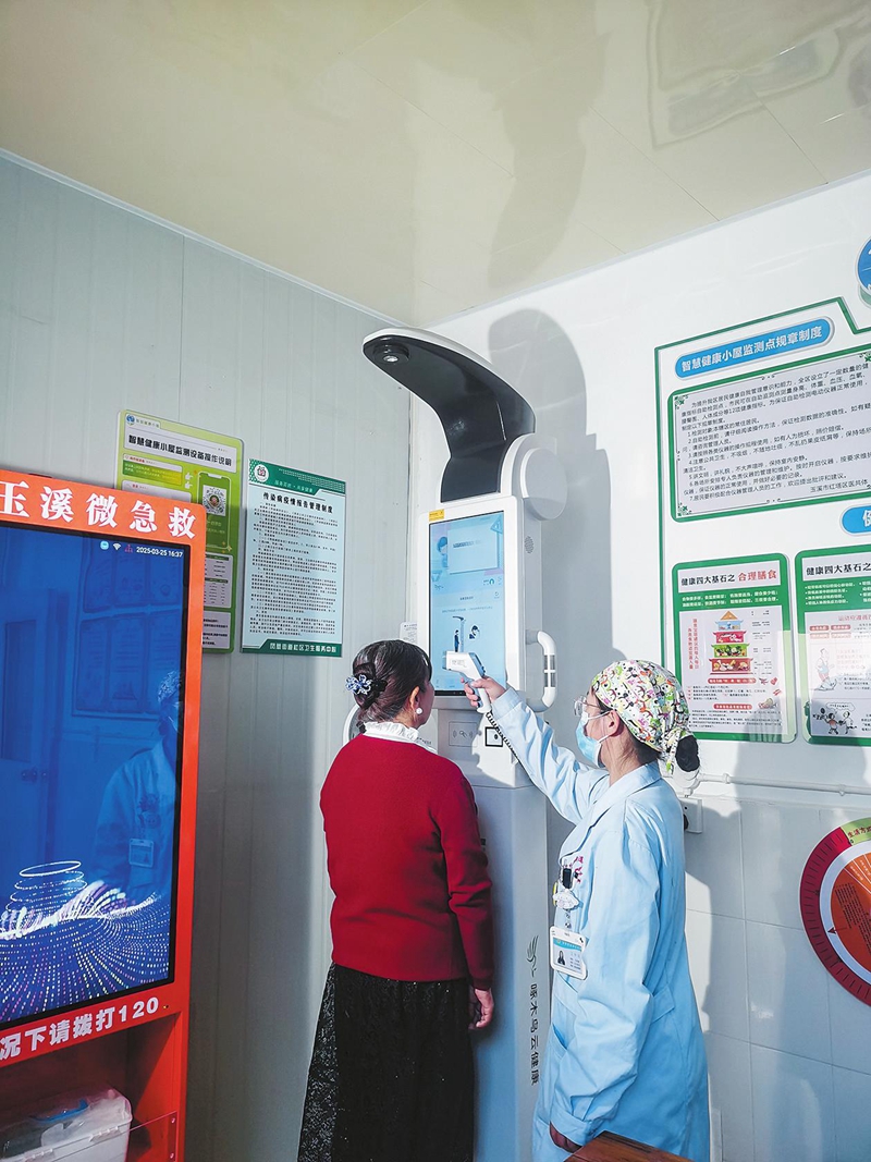 (靈秀衛(wèi)生室,醫(yī)生為居民進行健康體檢,采集數(shù)據(jù)進入玉溪“健康大腦”數(shù)據(jù)平臺)