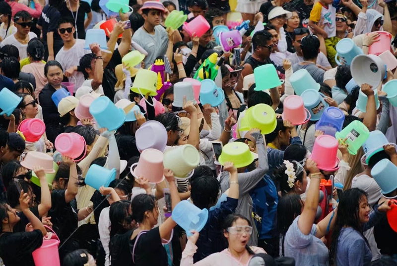 下午,各族群眾身著節(jié)日盛裝,踏歌而舞,在芒市廣場與四方來客共啟潑水狂歡。數(shù)萬人以象征吉祥的清泉相互祝福,通過水花傳遞友愛,在歡聲笑語中共同祈愿國泰民安,整個廣場沉浸在一片歡樂和諧的氛圍中。本屆潑水狂歡節(jié)除持續(xù)兩天全城潑水狂歡外,還舉辦了首屆潑水主題半程馬拉松賽、“樣樣好”民族跨界音樂會等多項活動。