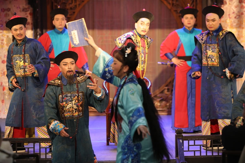 昆明市傳統(tǒng)地方戲曲和曲藝傳承展演中心帶來(lái)了廉潔主題庭院滇韻實(shí)驗(yàn)劇《錢南園》。該劇通過(guò)楊明等滇劇藝術(shù)家惟妙惟肖的表演,頌揚(yáng)了錢灃廉潔奉公、剛正不阿的氣節(jié)。