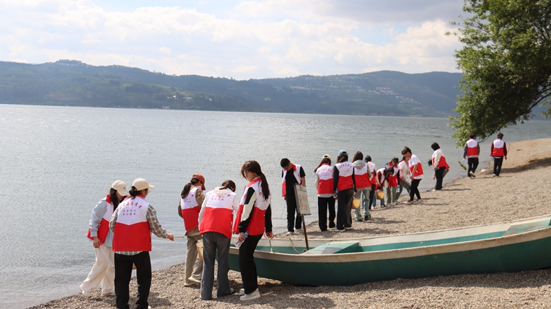 4月16日,昆明陽宗海陽光明媚,碧波蕩漾,一群身著紅色服裝的志愿者手持清潔工具,在施家咀濕地清理垃圾、撿拾煙頭、整治衛(wèi)生死角。這是陽宗海規(guī)模最大、數(shù)量最多、覆蓋面最廣的文明實踐主題活動。
