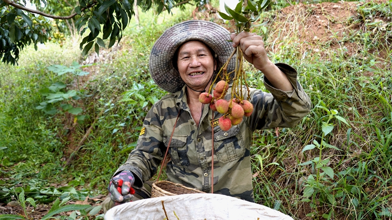 果農(nóng)刀玉瓊說:“我家的荔枝種了5畝,今年的果子結(jié)得多,現(xiàn)在老板陸陸續(xù)續(xù)地來收了,價格還是不錯的?!?/p>