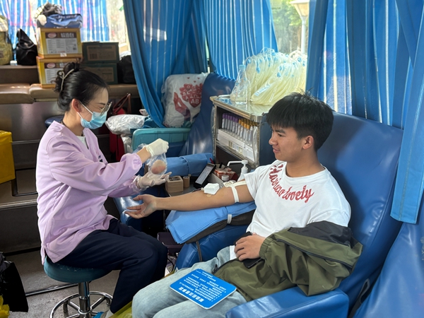 “第一次獻血是在2023年的五四青年節(jié),記得當(dāng)時護士姐姐問我:‘你害怕嗎’我說,我不害怕,心跳加速不是因為緊張,而是因為驕傲,每一袋血液都承載著生命的希望,它有可能為各類患者,如白血病患者以及手術(shù)臺上的癌癥患者等注入生命的力量?!痹颇现嗅t(yī)藥大學(xué)人文與管理學(xué)院22級學(xué)生李雨桐說,“迄今為止,我一共獻血兩次,累計捐獻了500毫升。或許有人擔(dān)憂獻血是否會損害健康,但作為一名醫(yī)學(xué)院校的學(xué)生,我可以負(fù)責(zé)任地向大家說明,獻血并不會對健康造成影響,反而能促進新陳代謝,還可以獲得助人的快樂?!?/p>
