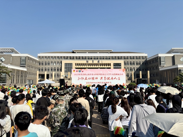 4月26日上午,由共青團云南省委、云南中醫(yī)藥大學(xué)、云南省學(xué)生聯(lián)合會、云南昆明血液中心聯(lián)合主辦的“弘揚五四精神?共享健康人生——青春為中國式現(xiàn)代化挺膺擔(dān)當(dāng)”大學(xué)生無償獻血活動在云南中醫(yī)藥大學(xué)呈貢校區(qū)五行廣場舉行。來自云南大學(xué)、昆明理工大學(xué)、云南師范大學(xué)等9所高校的三千余名師生代表參加獻血活動,以熱血傳遞青春力量,用行動踐行五四精神。
