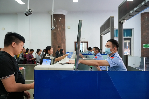 為全力做好“五一”假期的口岸通關(guān)保障工作,瑞麗出入境邊防檢查站根據(jù)實(shí)時(shí)客流變化,合理安排執(zhí)勤警力,提前開足查驗(yàn)通道,確保通關(guān)高效、順暢。同時(shí),科學(xué)設(shè)置、動(dòng)態(tài)調(diào)整通道比例,加強(qiáng)出入境旅客分流引導(dǎo),設(shè)置中國(guó)公民專用通道,確保中國(guó)公民邊檢出入境通關(guān)候檢時(shí)間不超過(guò)30分鐘??诎冬F(xiàn)場(chǎng)還設(shè)置有“特別通道”,為老人、孕婦和殘疾人等行動(dòng)不便的旅客提供通關(guān)便利;設(shè)置“一帶一路”專用通道,保障國(guó)家在緬投資項(xiàng)目的企業(yè)人員、物資出境。(高運(yùn)暢治、唐宬堯)