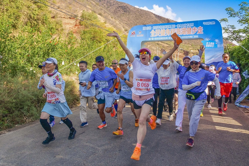 活動當天,程海天氣晴朗、和煦的陽光灑在步道上,湛藍的湖水波光粼粼,湖岸綠樹成蔭,大家一邊欣賞著程海湖秀美的自然風光,一邊相互鼓勵、交流,歡聲笑語不斷。參與者在享受運動樂趣的同時,紛紛拍照留念,記錄下了與程海湖的美好瞬間。