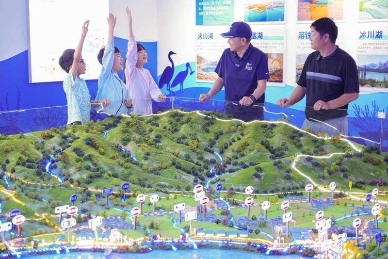 在研學的第二站,程海高原湖泊研究中心專家結(jié)合沙盤演示和實景觀光,為大家生動描述了程海的前世今生。小朋友們認真聽講、仔細觀展,踴躍參加趣味搶答環(huán)節(jié),程海的土著魚有哪些?程海湖里一共有多少種螺旋藻?大家爭先恐后地搶答,一時間,研究中心的展廳里充滿了歡聲笑語。