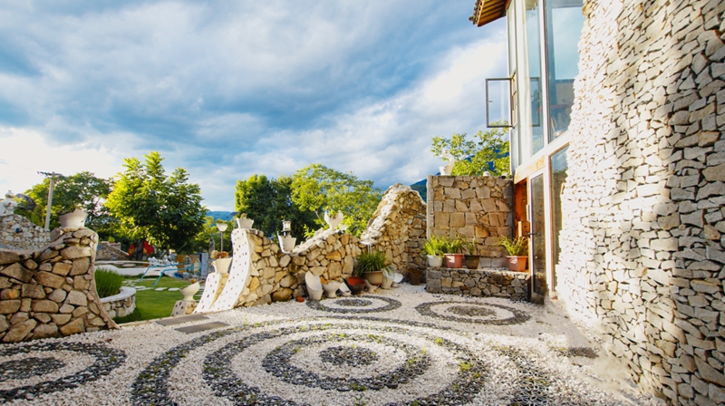 于是李永康帶著資金回鄉(xiāng),依托自己獨(dú)特的藝術(shù)鑒賞能力以及阿尼么自然資源,建成以石頭為底色、藝術(shù)為內(nèi)涵、鄉(xiāng)愁為內(nèi)核的“阿尼么007藝術(shù)農(nóng)莊”等半山民宿群,及特色餐飲點(diǎn)。